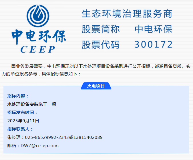 中電環(huán)保股份有限公司是南京市首家環(huán)保上市公司(股票簡稱:中電環(huán)保,股票代碼:300172),南京環(huán)保產(chǎn)業(yè)協(xié)會會長單位,國家級聯(lián)盟理事長單位,是生態(tài)環(huán)境治理服務(wù)商,主營(3+1):水務(wù)、固危廢、煙氣治理及產(chǎn)業(yè)創(chuàng)新平臺,包括:工業(yè)水處理、污水處理及水環(huán)境綜合治理;固危廢土壤、污泥餐廚垃圾處理;煙氣及VOCS治理;智慧環(huán)保;高端裝備等。