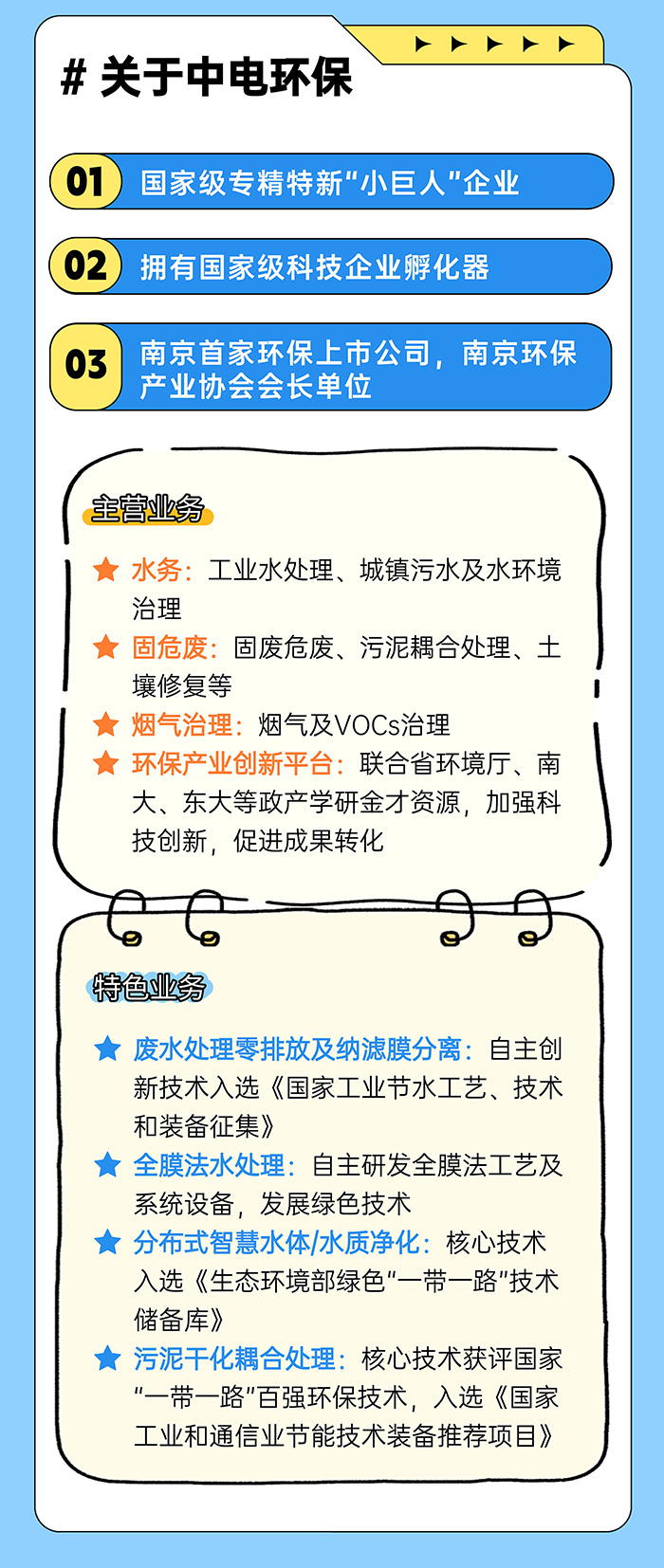 中電環(huán)保股份有限公司是南京市首家環(huán)保上市公司(股票簡(jiǎn)稱:中電環(huán)保,股票代碼:300172),南京環(huán)保產(chǎn)業(yè)協(xié)會(huì)會(huì)長(zhǎng)單位,國(guó)家級(jí)聯(lián)盟理事長(zhǎng)單位,是生態(tài)環(huán)境治理服務(wù)商,主營(yíng)(3+1):水務(wù)、固危廢、煙氣治理及產(chǎn)業(yè)創(chuàng)新平臺(tái),包括:工業(yè)水處理、污水處理及水環(huán)境綜合治理;固危廢土壤、污泥餐廚垃圾處理;煙氣及VOCS治理;智慧環(huán)保;高端裝備等。