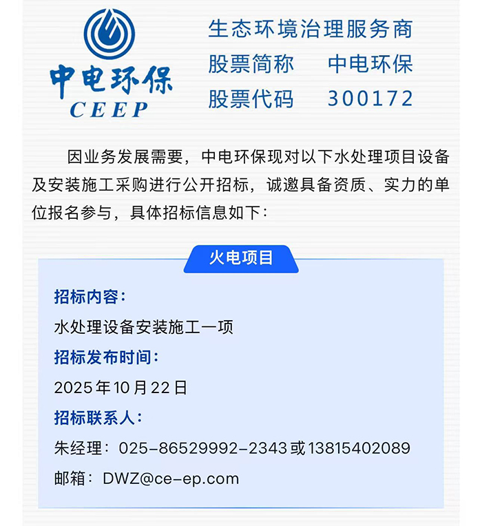 中電環(huán)保股份有限公司是南京市首家環(huán)保上市公司(股票簡(jiǎn)稱:中電環(huán)保,股票代碼:300172),南京環(huán)保產(chǎn)業(yè)協(xié)會(huì)會(huì)長(zhǎng)單位,國(guó)家級(jí)聯(lián)盟理事長(zhǎng)單位,是生態(tài)環(huán)境治理服務(wù)商,主營(yíng)(3+1):水務(wù)、固危廢、煙氣治理及產(chǎn)業(yè)創(chuàng)新平臺(tái),包括:工業(yè)水處理、污水處理及水環(huán)境綜合治理;固危廢土壤、污泥餐廚垃圾處理;煙氣及VOCS治理;智慧環(huán)保;高端裝備等。